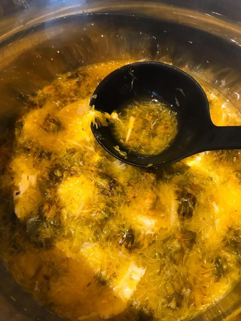 When spring becomes even warmer the green leaves get the decoration. This is the sign, that leaves are no longer good for the salad, but we can move on to a beautiful yellow flower that decorates most of our fields. Ladies that were picking the leaves before usually comment how come that they didn’t see that dandelion before, when they were picking it. Flowers can be picked for herbal tea, we can put them into beer-batter and stir fry them and have them as a dessert or we can make a healthy dandelion syrup, which is helping with our digestion and supports our immune system  for the upcoming winter. Just yesterday we picked enough flowers to make a wonderful syrup. This is the recipe I have used and if you stumble upon some of this yellow beauties, you can do it yourself as well: