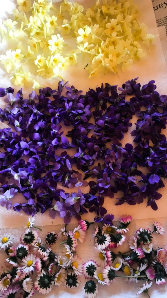 For the last six weeks the most common thing we kept on saying every day was how thankful we are that we live in the countryside. Chatting with friends from all over the world, where most of them live in the cities, we have come to a final conclusion, that we wouldn’t change our spot with them ever. Even before I was always happy to return back home from all of my travels. Back to green, back to birds singing, back to the unpolluted air and pastures full of flowers. They always filled me up with new energy that I needed for the upcoming adventures. Right now I am realising, going to nature every day is my secret medicine. It revives my soul, helps my wild spirit, which always seeks for new discoveries and feeds me with optimism. I always remember how I used to go picking up wildflowers with my grandfather and how my grandparent’s home was always full of drying flowers and secret bottles and jars of syrups that were home-made. My grandma used to say that everything you really need for health you can find in nature. “For every illness, a flower grows,” is a common saying in Slovenia. When I was a kid I loved going with them, but growing up into teenage years and into adulthood it kind of lost its charm. There were too many other things that were on my mind. But when life became hectic, lately I discovered, I am going back to what my grandparents did. It is usually a lot more fun when I have a friend, who re-introduced this charm to me, with me and we can be on those pastures for hours on end. Since we are still quarantined, outing with a friend will need to wait for a while but family can always join and that is what we have been doing lately. For the last couple of months Slovenia has had splendid weather. It felt like nature is giving us a patch with whom we can heal our wounds, caused by covid-19. So we started collecting some of the first flowers for our herbal tea, that will be in the making pretty much till the end of the summer. Sometimes this tea has over twenty different kinds of flowers and plants inside  at the end of the picking season; and once you open a glass jar in the middle of the winter, it feels like all of the summer pastures are right there with you again. Primroses, violets, daisies, nettle, wild strawberry leaves… this is what we started with. But still waiting for many more to spring up when we go more into the summer. The first flowers and plants are the cleansers, then we get the aroma and the last ones close to the fall are the healers. It is interesting that this same plants and flowers do exactly the same to the soil as well. Getting it cleansed, beautifying it and then getting it ready for the winter’s harsh times.