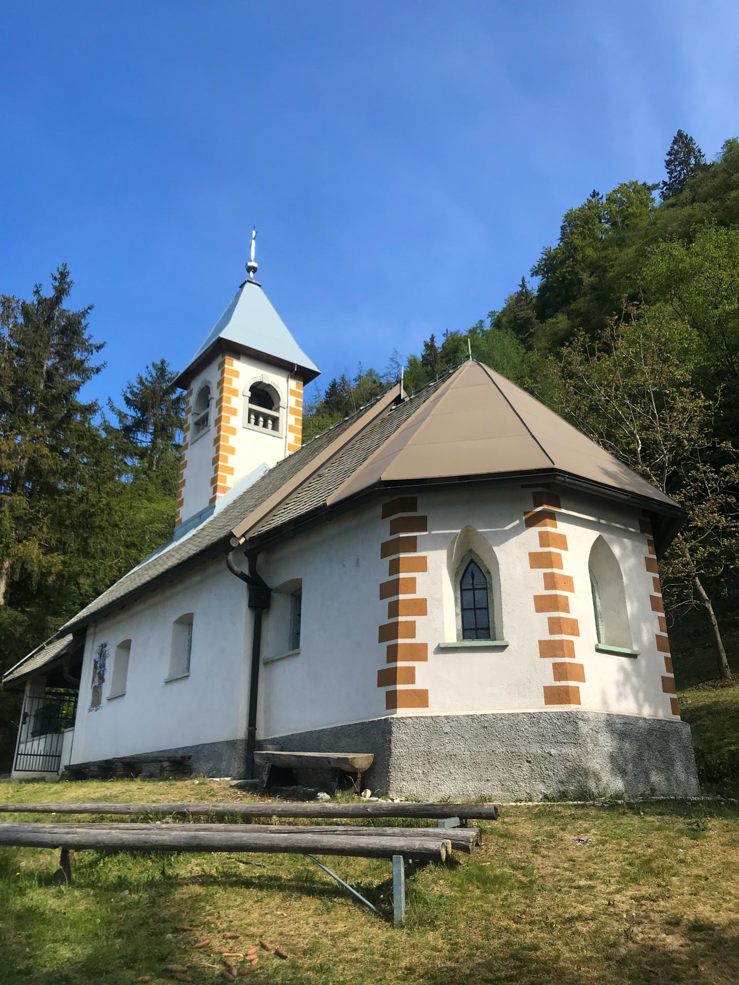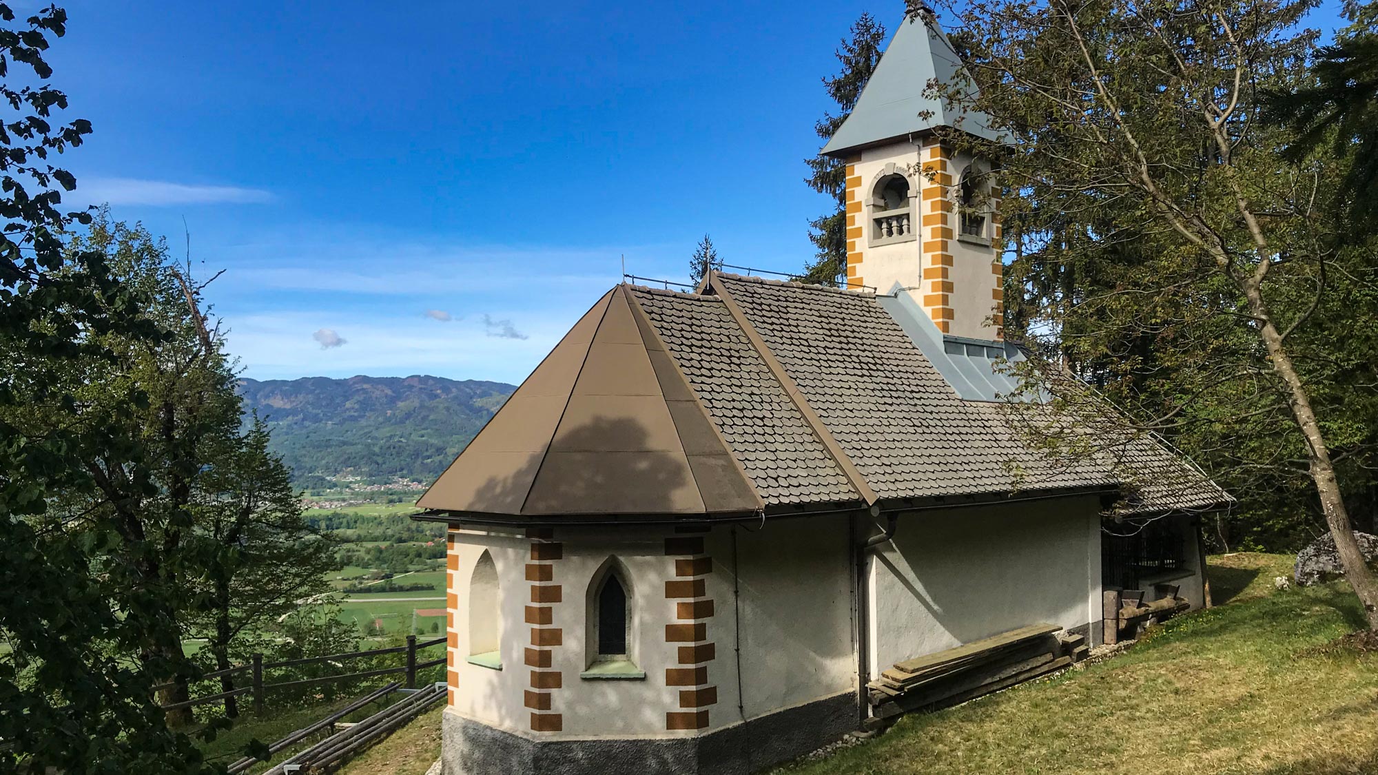 When you drive through Slovenia you can notice a big number of church steeples peeking out of the villages or through forests on the top of the hills. As a guide I have been asked so many times: “Why are there so many churches up above in the hills over here?” The reason is that churches were mostly built for strengthening the community. A lot of them were build in the times of Turkish sieges and they served as a protector. But how can a church protect its people? Easily – by sitting high, you are on a lookout, the roads back then are gravel and the dust lifted behind the horses is visible from far. When the danger approaches, the churches start ringing the bells that are heard all the way down to the valley and people have time to hide – their wealth, their goods and their kids. Especially the latter was of interest to Turkish army back in the day, when they were plundering in our area. When they kidnapped the kids, they were educated as soldiers and sent to military missions elsewhere in Europe. But enough of this tragic stories from the past. At the moment we have about 2900 churches in the country that has 2 million inhabitants. Not all of them are open all the time, some of them have services only once or twice a year. But many of them are a popular hiking destination for local people. We say in a joke that every major municipality has a church up the hill that serves as a sacred spot for the community. Even if people are not religious or hike up because of religious reasons, they are a visited on daily basis. The hill church in our capital city of Ljubljana, Šmarna gora is on weekends so popular that needs to have a two – way traffic: one way for up the hill, one way for down the hill. Stories like that never end in Slovenia.